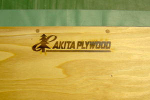 観客席の床には雰囲気を高めるために、秋田プライウッドと秋田ノーザンハピネッツのロゴマークが焼印で刻まれています。