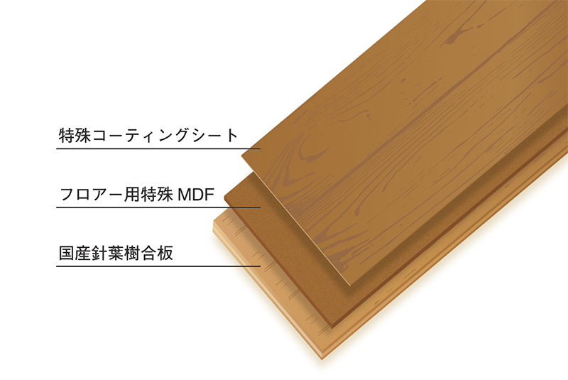 - 木材は湿度の変化により伸縮する性質があります。床暖房使用時には縮みによりスキや反り、床嗚りが発生する場合があります。これは天然木材の特性によるもので、避けられない現象です。