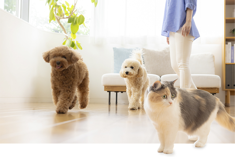 - 走行時や爪・肉球まわりの毛の状態によっては滑る場合があります。