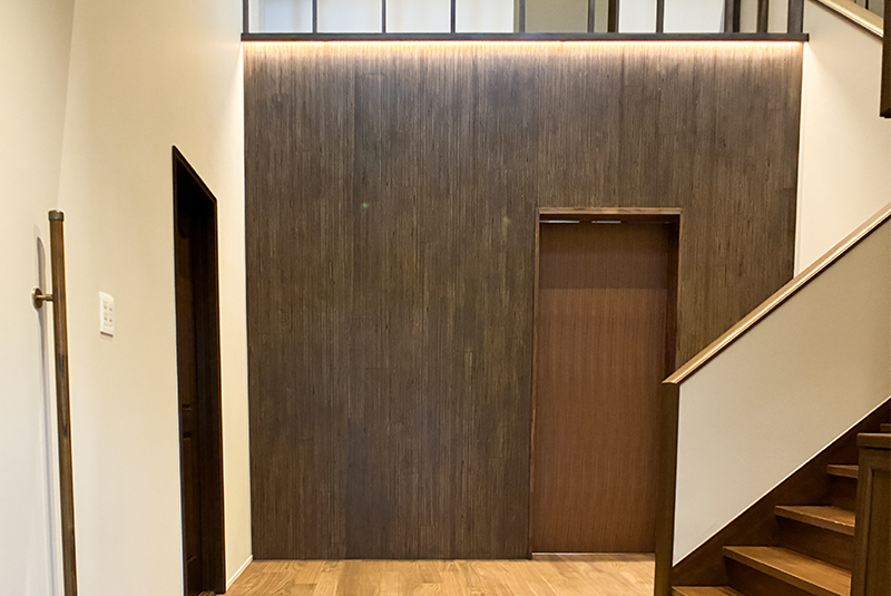 一般住宅のリフォームにあたって壁に積層面が採用され12mm厚、22mm厚、32mm厚(サイズ1,800×112mm)をカットして、サンダー処理によって表面を滑らかに仕上げて納品。