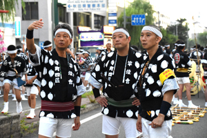 夜竿燈は、会場となる竿燈大通りを各竿燈会がぐるりと列をなして、演技を行なっては移動を繰り返して、それぞれ異なる場所で1日に計3回演技を披露します。その日最後となる3回目の演技では、観客もその日一番の演技を見ようと「ドッコイショー、ドッコイショ」の掛け声が一段と高まります。それに呼応するように差し手と囃子方の動きにもより一層の熱が帯びていき、繰り出される大技と力強い演奏が一体となり、まつりは最高潮を迎えました。