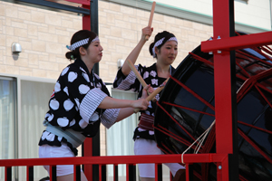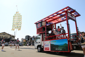 今年は太鼓を載せる屋台が新しくなり、当社の社有林「アキプラの森 鳥海」の写真が内照式パネルとして設置されました。「アキプラの森 鳥海」のパネルは、観客に秋田の豊かで美しい森林をアピールするとともに、演奏に集中する囃子方の足元を支える舞台となりました。