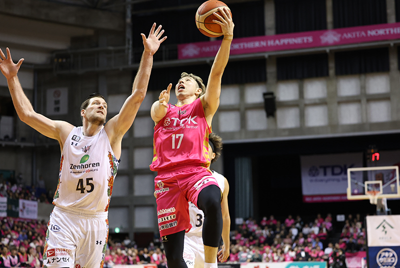 後半に入り第3クォーターでは秋田のディフェンスが機能して一時は1桁点差まで追い上げを見せたものの、琉球の6選手が2桁得点を上げるバランス良いオフェンスの前に69-100と敗れてホーム開幕戦を勝利で飾ることはできませんでした。