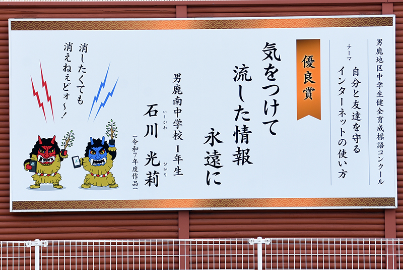 コンクールは男鹿市全体で中学生の健全育成の気運や意識の高揚を図ることを目的として行われており、インターネットやSNSに潜む危険性への意識を高めて、注意を呼び掛ける標語を中学生から募集してその中から選ばれた入賞作品を潮風ギャラリーで紹介しています。