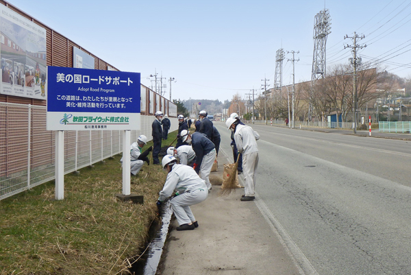また、当社は清掃ボランティア「船川港湾区域アダプト・ロード・プログラム」で環境保全活動を行っているほか、なまはげ柴灯まつりや男鹿日本海花火などの行事・イベントの開催支援、男鹿水族館GAOへの木材チップ提供、子ども達の通園・通学のためのバス整備事業への協力などを通じて、男鹿の活性化や地域社会の維持に貢献したいと考えています。