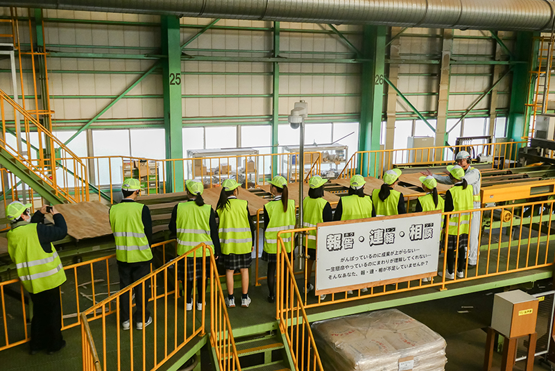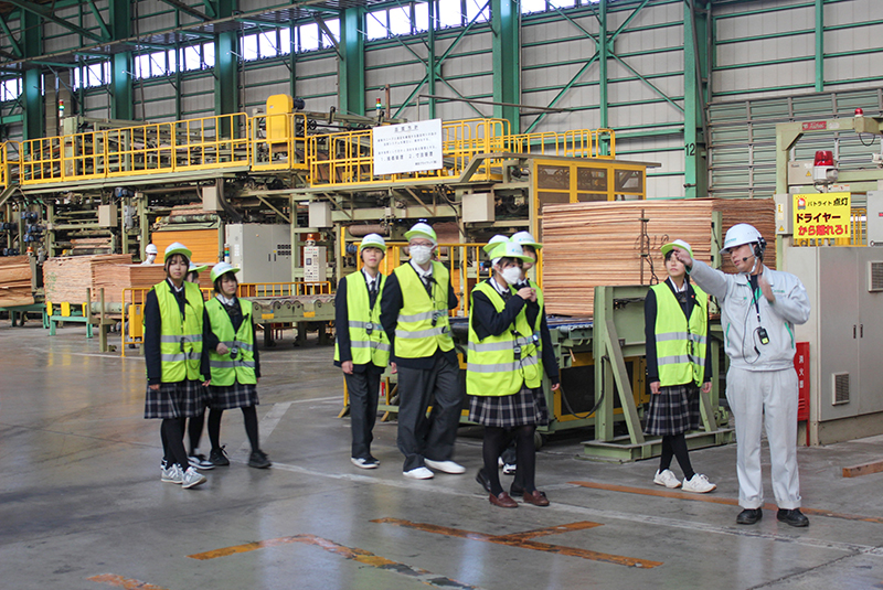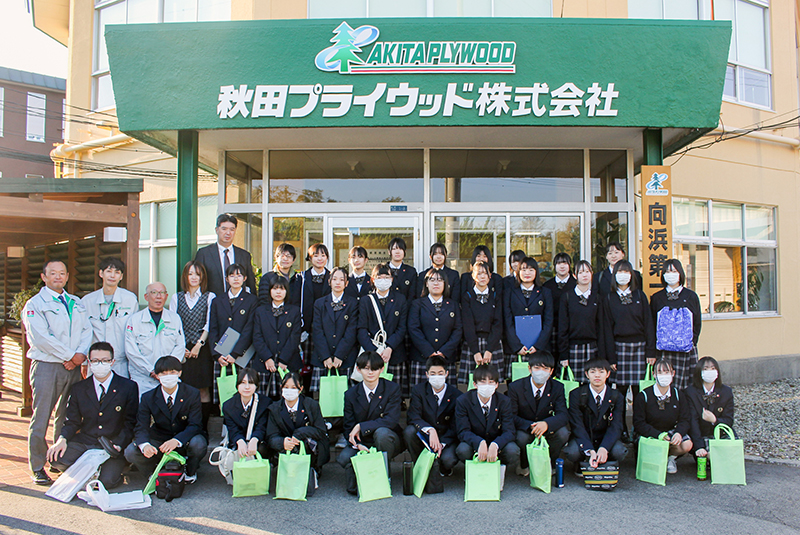 秋田県立大曲農業高等学校園芸科学科1年生29名が合板メーカーである当社の事業内容を知ることを通じて、社会との関わりや地域への貢献について理解を深めてもらえる機会となりました。