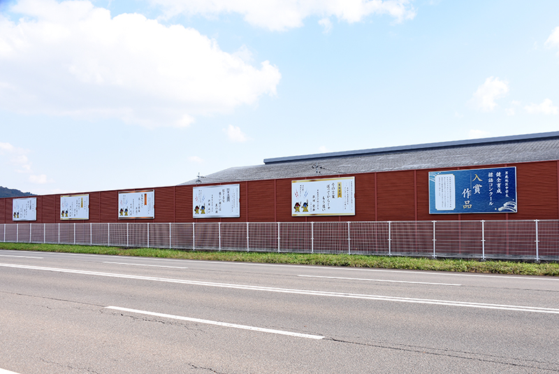 潮風ギャラリーでは小・中学生の力作が船川海岸通りで出迎える