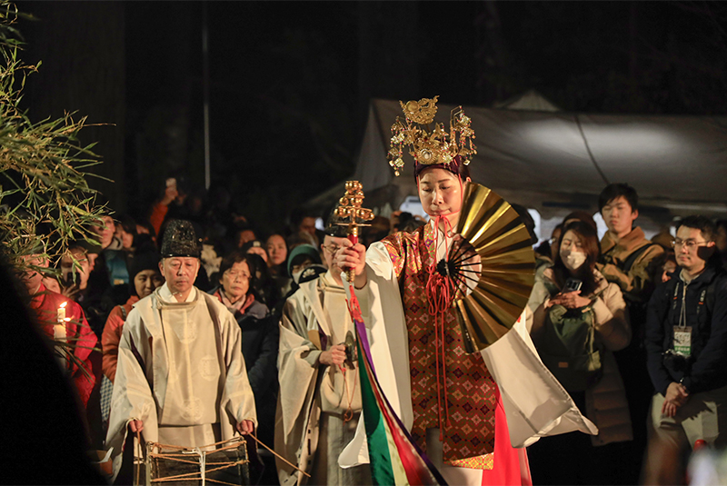 男鹿地方独特の祓い神楽を奉納する「湯の舞」
