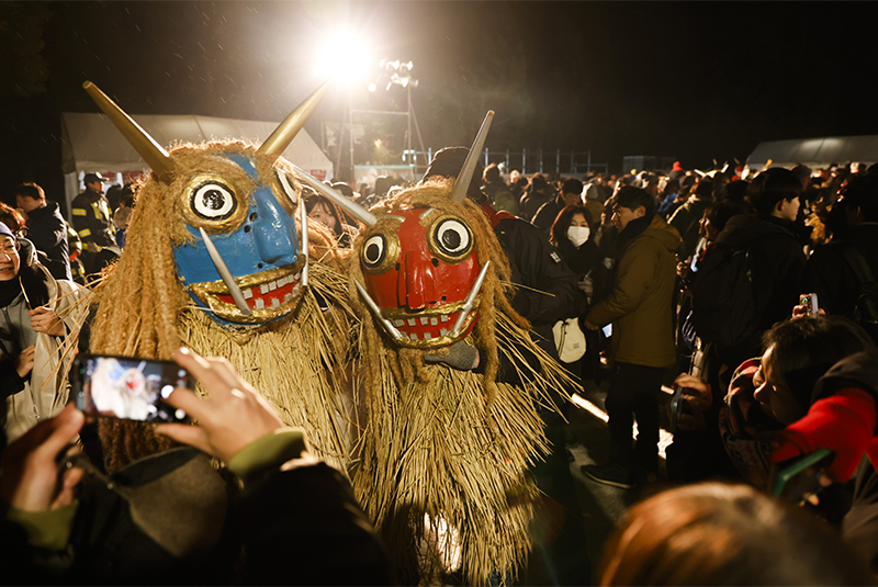 今年のまつりは2月13日から15日までの3日間にわたり開催され、多くの来場者が躍動する「なまはげ」の姿に圧倒されながら、来訪神の御利益を授かっていました。