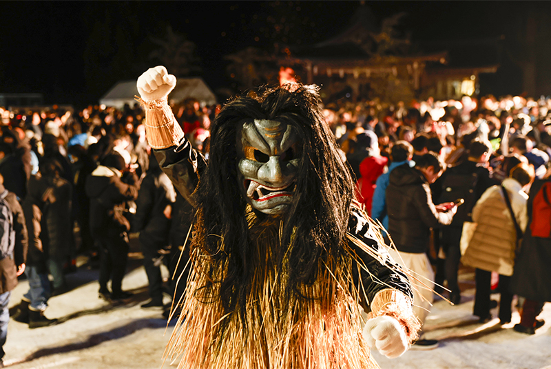 「なまはげ柴灯(せど)まつり」は、秋田県男鹿市に受け継がれてきた民俗行事「なまはげ」を、神事として厳かに再現する冬の秋田県を代表する伝統行事の一つです。「なまはげ」は地域の暮らしや信仰と深く結びついた来訪神であり、2018年にユネスコ無形文化遺産に登録されて以来、祝福をもたらす来訪神「なまはげ」を目の前で見るため国内外から多くの観光客が訪れるようになりました。