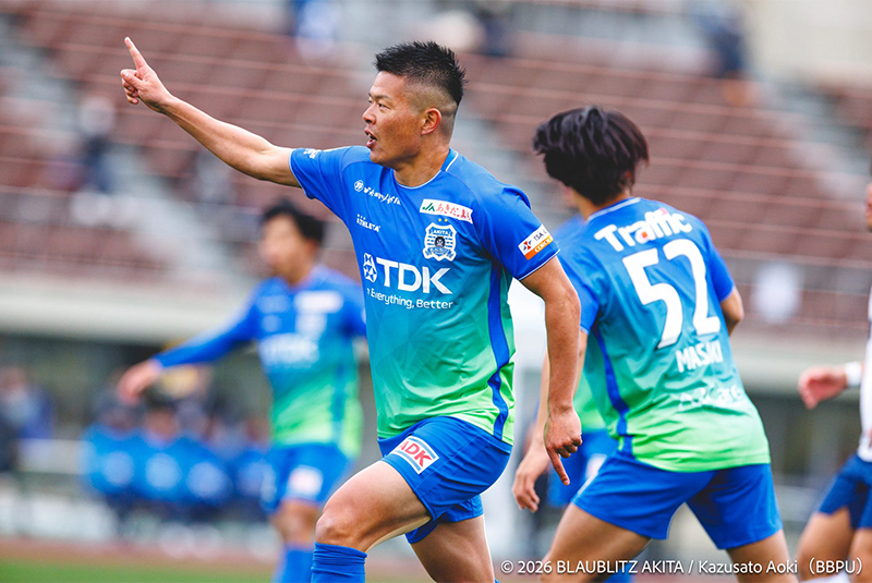ブラウブリッツ秋田はホーム3連戦となる初戦に勝利し、5勝1敗として10チームで争うEAST-Aグループ2位に付けています。次戦からはJ2八戸と仙台をホームに迎える東北ダービーとなり、選手はもちろん両サポーターを含めた熱い戦いとなることが必至です。栃木SC戦では球際の激しさによるボールの奪取、前線からのプレスによってチームが掲げる「堅守速攻」によって勝利を収めました。秋田のため、勝利のために試合終了の間際まで走りに走り抜いて「秋田らしさ」を体現する選手たちの姿は秋田サポーターの誇りです。
