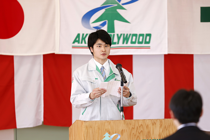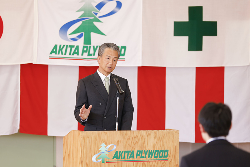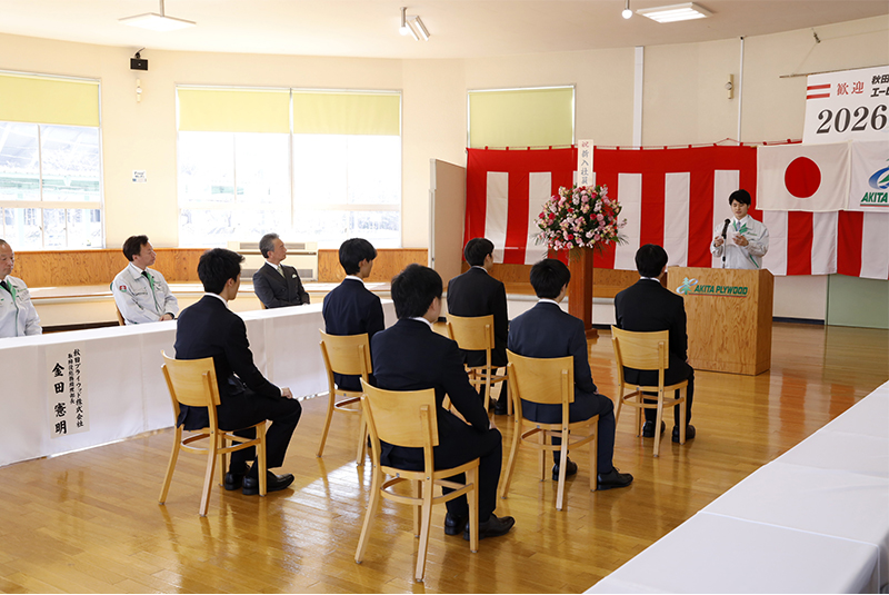 また、初歩的・基本的な仕事であっても合理的で適切な準備が必要であり、将来、重要で責任ある仕事を任される立場となった時、新入社員のうちに取り組んだ基礎的な仕事が大切であることがわかるようになる、と励ましました。秋田プライウッドグループにはたくさんの先輩や仲間がいるので、失敗を恐れず新しいことに挑戦し、経験を糧として成長してほしいエールを送りました。